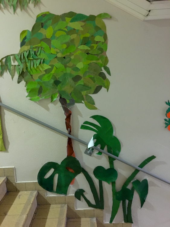 C’était la consigne donnée à certaines classes de 4e. Le travail étant de choisir et d’étudier un spécimen de la flore existant et de le dessiner puis le peindre à taille réelle. Le couloir du bâtiment B au 4e a été ainsi complètement investi.