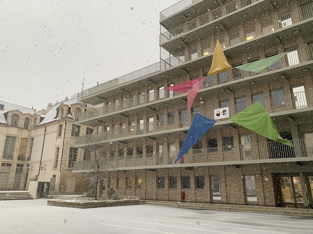 Sol glissant et circulation ralentie… Mais surtout une école métamorphosée sous un manteau blanc.