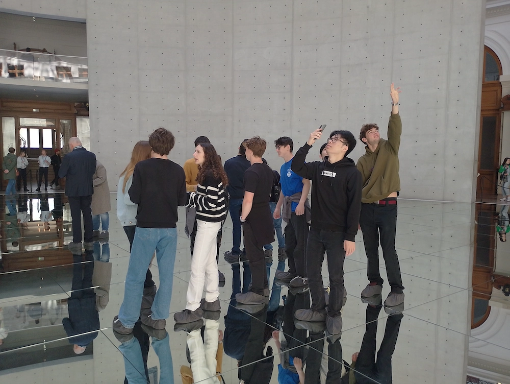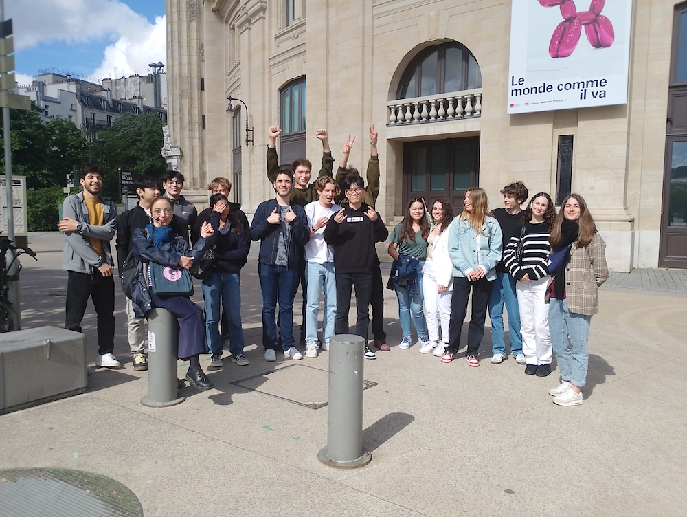 Mercredi 15 mai, dans la matinée, les terminales STMG ont réalisé un travail de recherche en philosophie à la Bourse du commerce, en lien avec leur programme sur l’art. Les artistes y interrogent le monde contemporain et ses crises et ils nous éclairent sur leur sens. Ils questionnent les paradoxes de nos sociétés contemporaines en pleine mutation. L’exposition « Le monde comme il va » emprunte son titre au conte philosophique de Voltaire (Zadig). À la manière des personnages voltairiens, on est exhorté à observer, décrypter, partir à la conquête d’une humanité en prise avec son temps. La fièvre du monde, délirante et routinière, se retranscrit dans deux générations d’artéfacts représentés : une première née dans les années 1980 et 1990, puis une seconde réalisée à partir des années 2010. Chaque espace de la Bourse du Commerce a conduit les élèves dans l’univers d’artistes déjà institués (tels que Damien Hirst, Jeff Koons ou encore Cindy Sherman), mais également, des virtuoses plus jeunes tels que Mohamed Sami, Marlene Dumas ou encore Pol Taburet. Un souffle anime ces œuvres, une conscience aiguë du présent. Qu’est-ce qu’une toile d’époque ? Un témoignage ? Les artistes contemporains à l’honneur dans Le monde comme il va ironisent et s’harmonisent avec une réalité inquiète, où fantômes du passé et inconstance de l’avenir s’épousent. Fantasmes, politique et désuétudes dialoguent dans les silhouettes troublées de la collection de François Pinault. Les élèves ont rendu un travail et mis en lumière des questions sur le rôle de l’art aujourd’hui.