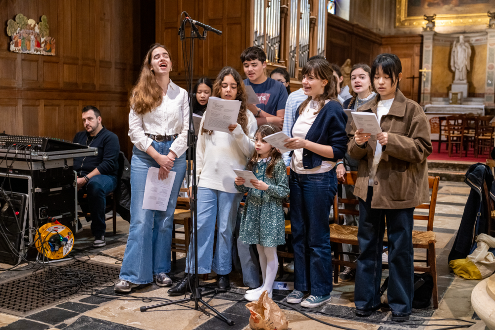 Parents, membres de la direction, professeurs, éducateurs, élèves lasalliens venus de Hong-Kong, chanteurs du GAP et membres de l’Apel présents pour assister à ce passage de témoin entre parrains et filleuls, aînés et cadets.