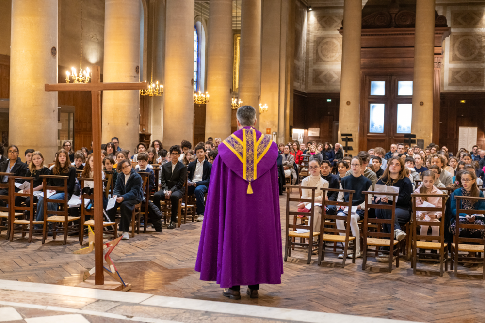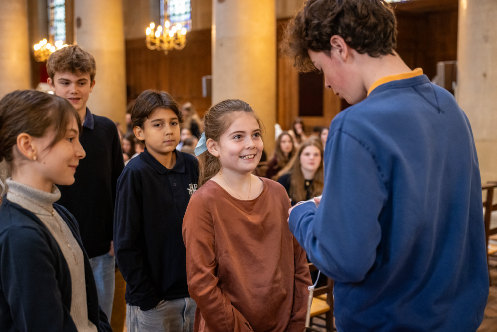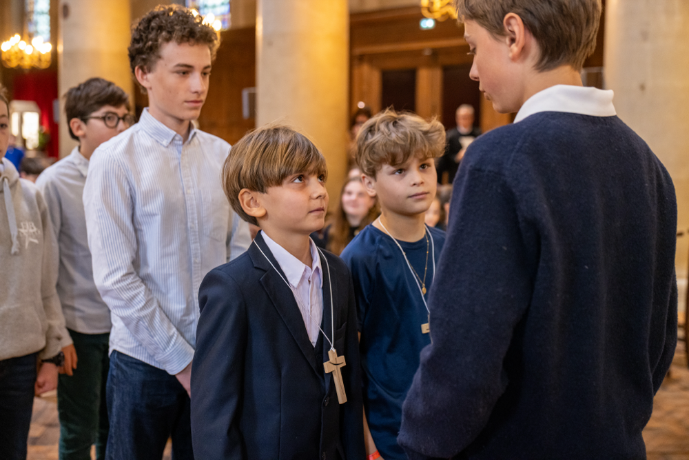 En présence des Frères des Écoles chrétiennes, du Chef d’Établissement et sous la présidence du Père François en l’Église Saint-Denys du Saint-Sacrement ce samedi 28 mars, 68 élèves de 6ème et 40 Confirmés de 3ème ont rayonné lors de la célébration de Remise de la Croix et de l’étoile lasallienne.