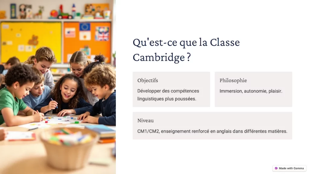 Un double niveau CM1/CM2 concentré sur une excellente maîtrise de l’anglais avec un enseignement renforcé et la possibilité de passer un examen certifiant dès le CM2.