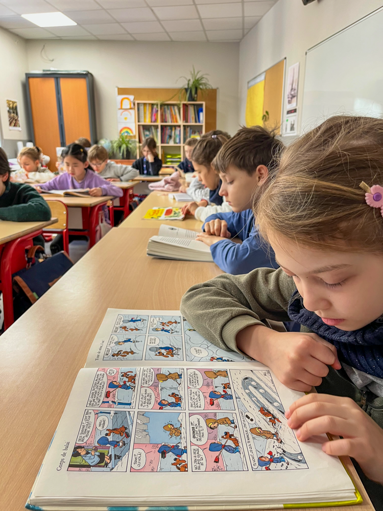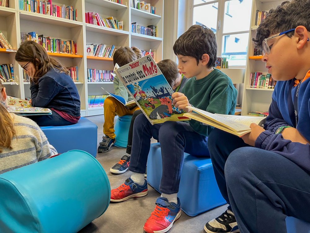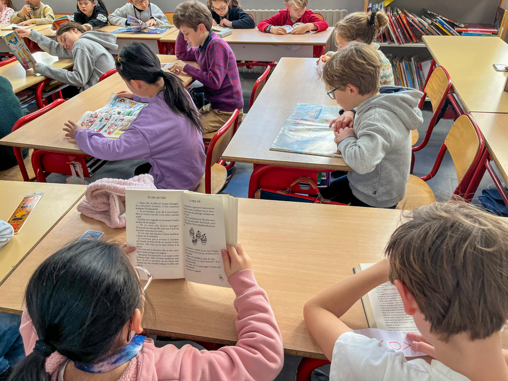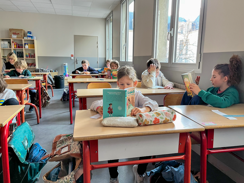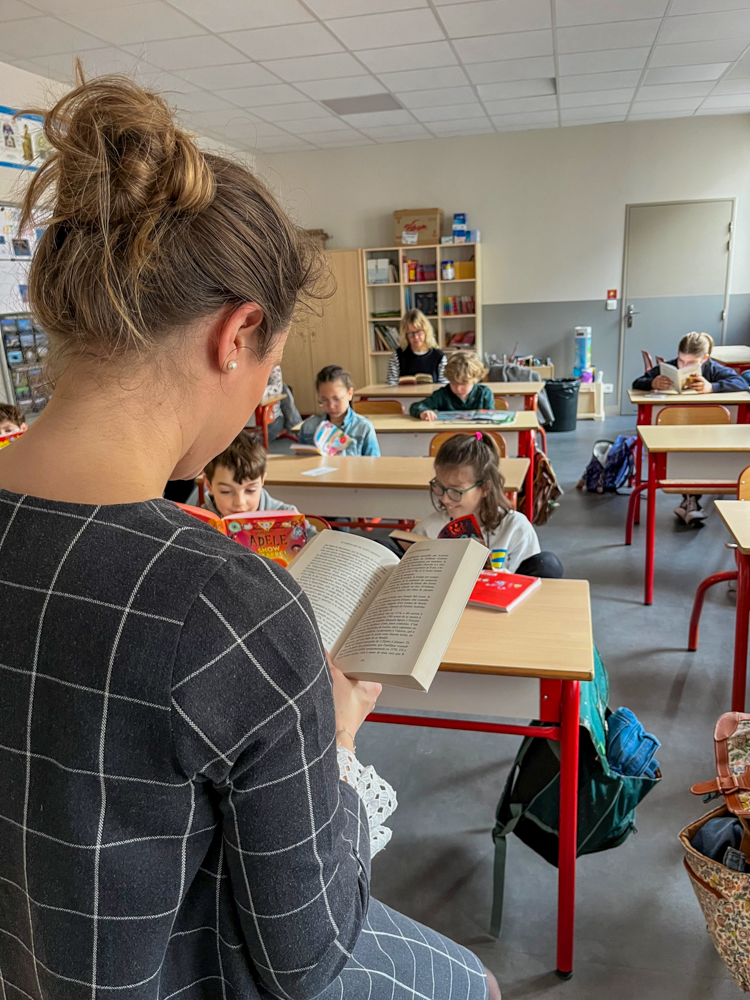 Nos élèves du primaire concentrés pour le quart d’heure de lecture national organisé par le Centre National du Livre le mardi 11 mars.